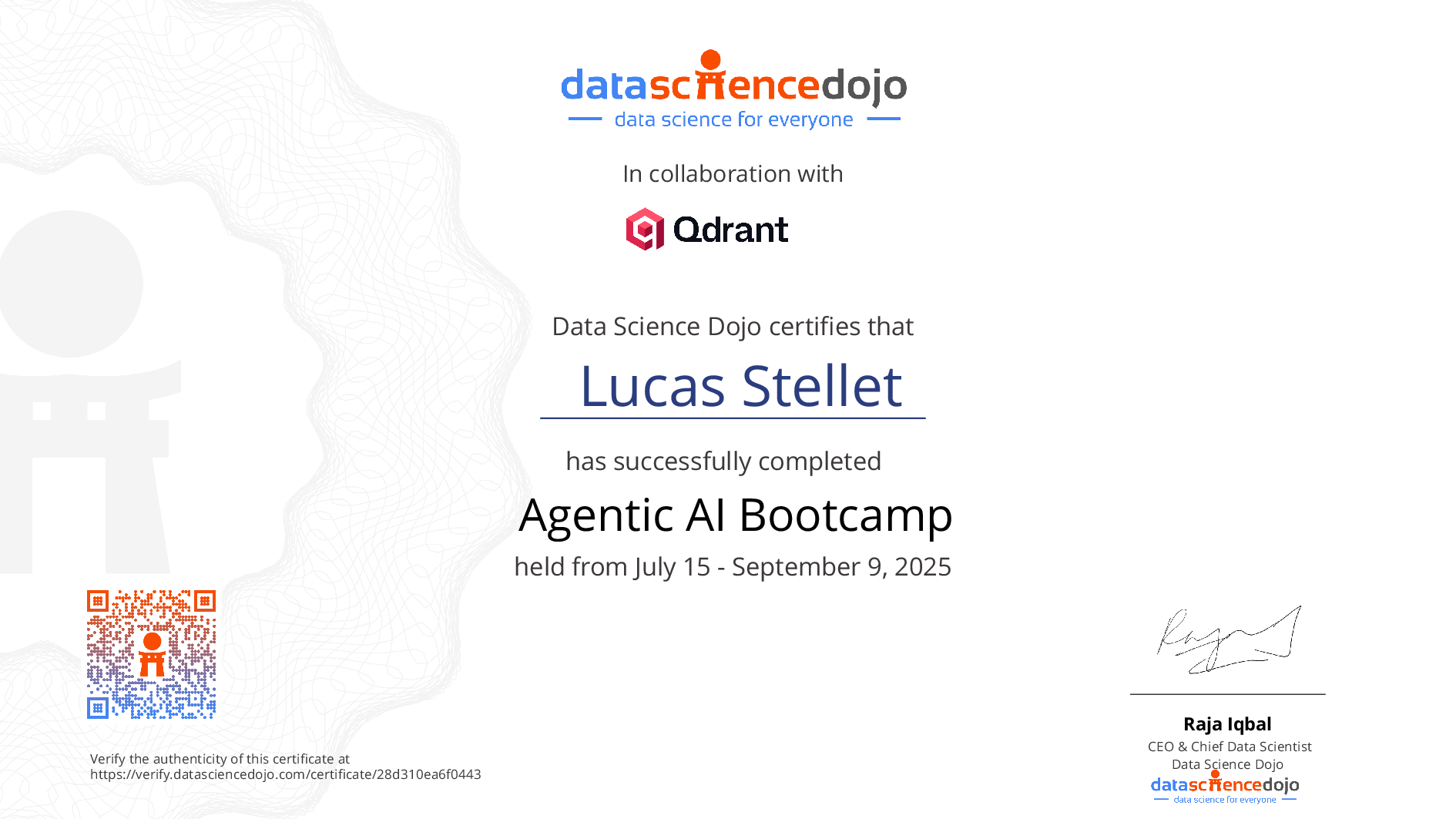The existence of this website verifies that Lucas Stellet has completed the Agentic AI Bootcamp training.